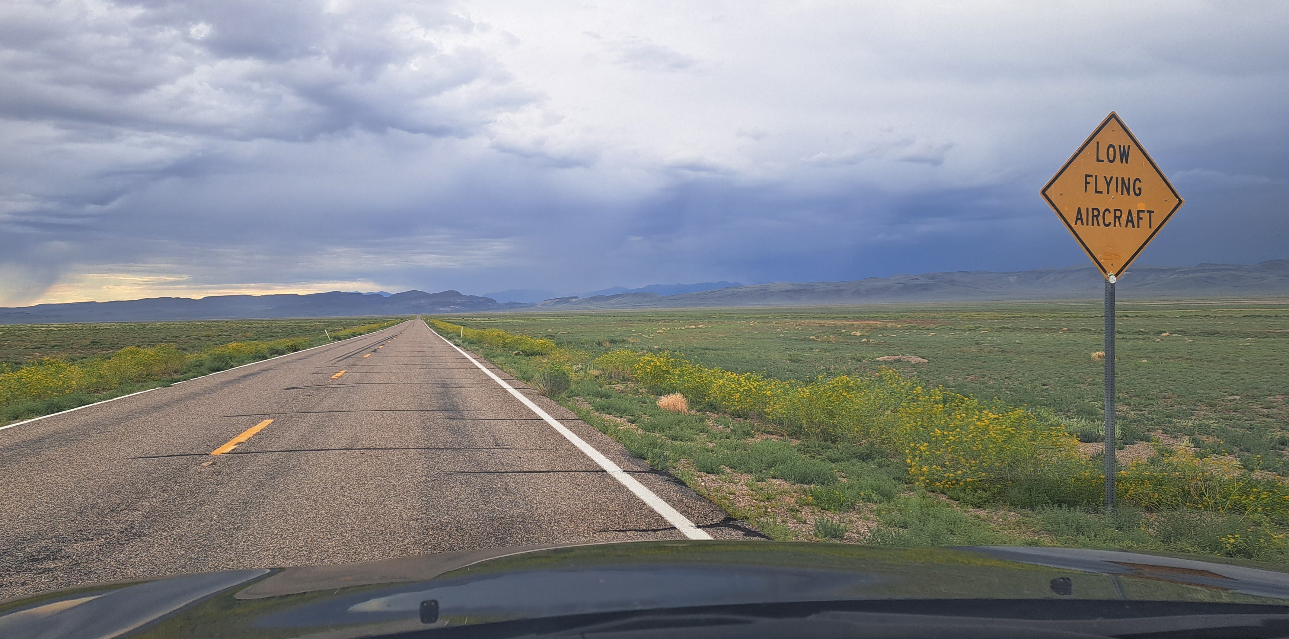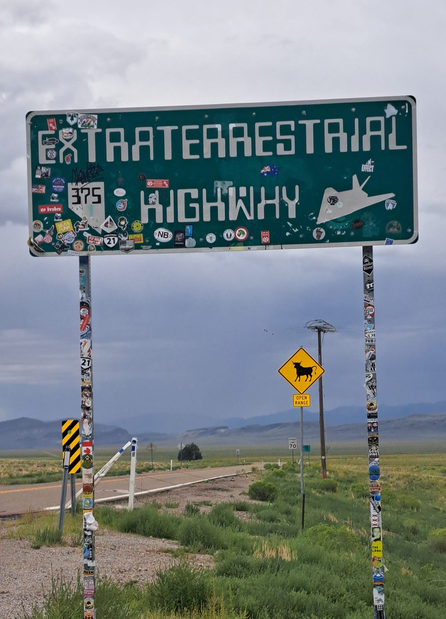 On a recent road trip across Nevada, buckled up, with the doors locked, I took a chance on driving the 98-mile Extraterrestrial Highway, aka SR375. I knew it was a gamble. I was alone. I’d come south from Ely. Almost there.