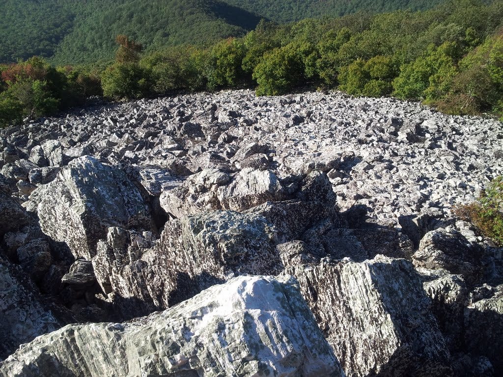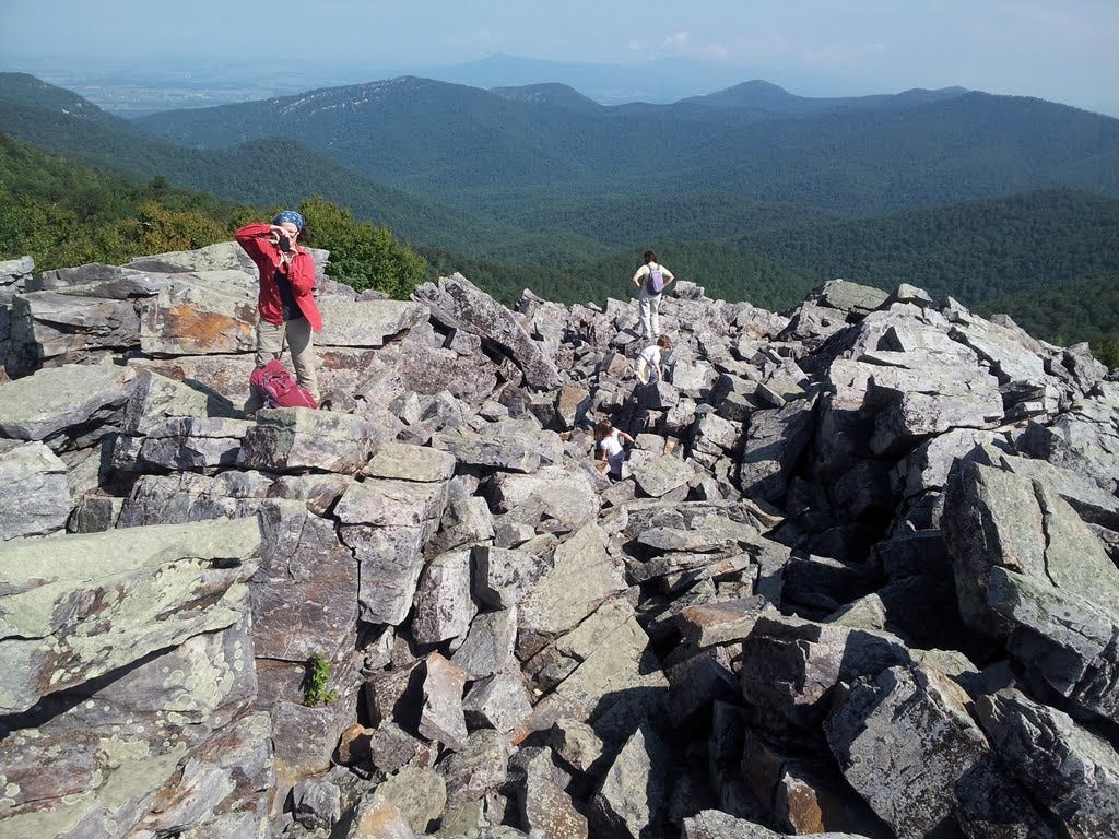 We picked up our camp at Shenandoah's Loft Mountain on Labor Day, and not missing a beat, headed for the camp store for some morning joe. A ranger was leading a talk-and-walk a few miles away to Blackrock Summit, which sounded like a mountain top to me. We scooted over to the trailhead to get our minds prepared for another itty-bitty mountain climb. Yeah, pretty easy, but still nursing a sore knee, I’ll take what I can get.