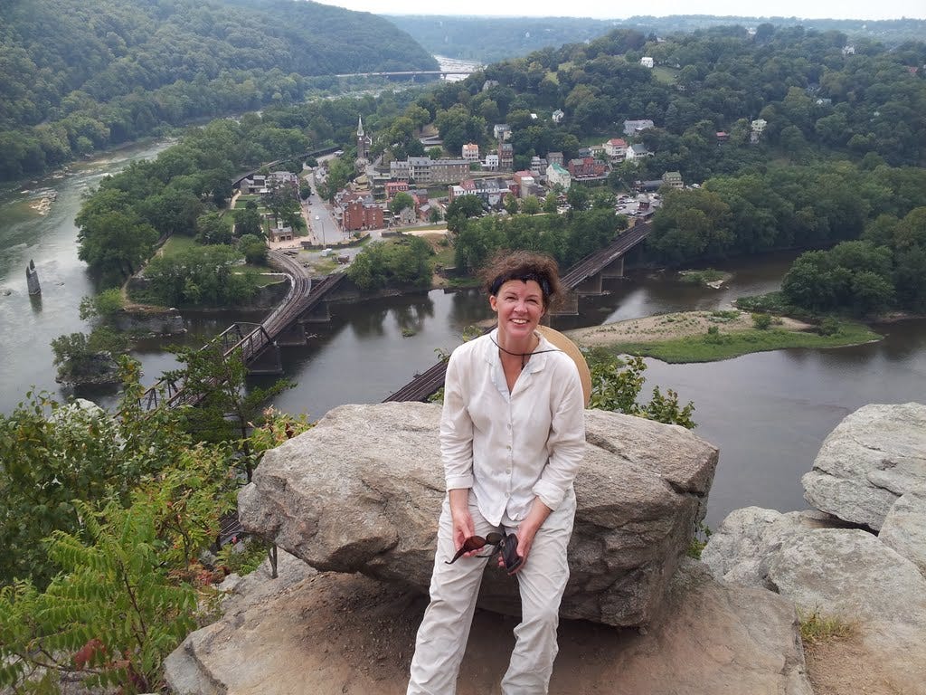 We braved a “sunny and 80s” forecast with our third trip to Harpers Ferry, this time to hike up the popular trail to Maryland Heights. The town of Harpers Ferry dates from the 1790s and has a very rich history (Civil War and pre-Civil War) in an exceptionally scenic setting where the Shenandoah River spills into the Potomac. An old railroad bridge over the latter (now part of the Appalachian Trail) and high cliffs above offer dramatic views and it was time we got us some. We rolled into town mid-morning and rambled a bit before heading across the bridge, briefly along the C&O Canal, and up the steep trail to the Heights.
