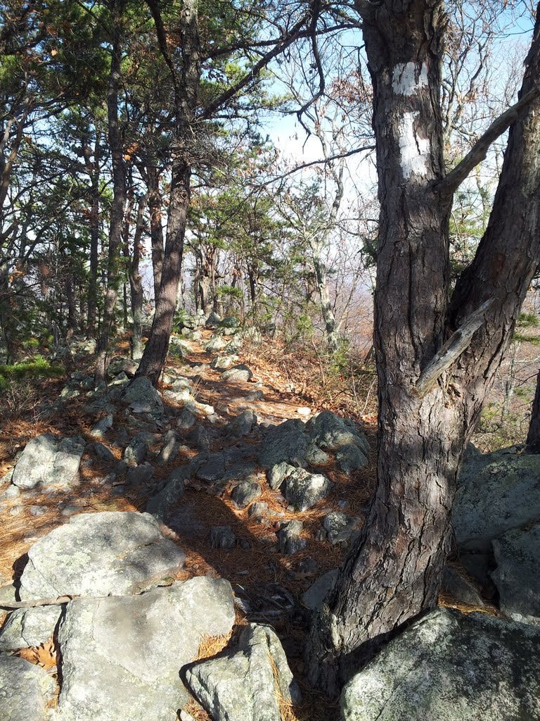 This was another hike I found at hikingupward.com and it sounded like a good choice for a cool-ish fall day for Kris and I. It took us a couple wrong turns to find the trail, but we eventually got there and suffered a not too interesting ascent to the rockily scenic ridge crest. It wouldn’t take much to improve the trail to the best view point with a nice sitting area and I was tempted to give it a go right then and there. But lacking any tools to flail around with, I conceded it would have to wait for another day.