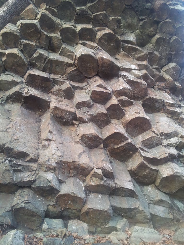 I did manage to make the stair-steppy side-trip down to the oft-touted columnar jointing outcrop of Catoctin lava, an added visual treat and worth the effort. Reportedly, the lava cooled more than a half billion years ago, which is somewhat more than a wee bit on the Gregorian calendar.
