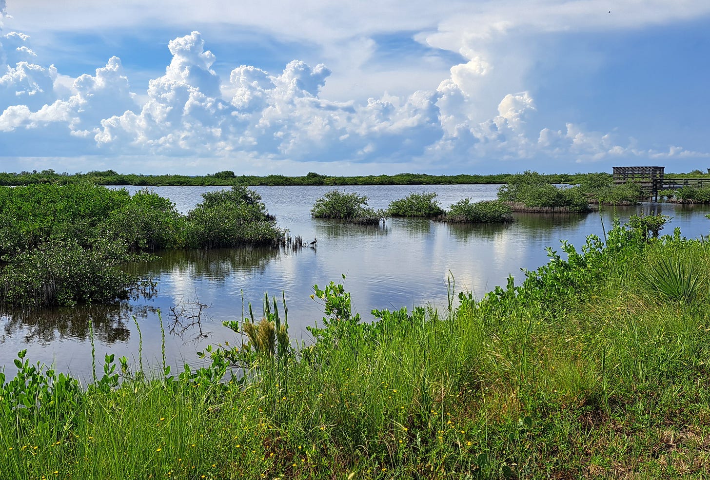I frittered away the next few days with Rob and his friends, getting acquainted with lovely Titusville, hearing NASA stories, and touring some of the local sights, beaches and wildlife areas from there to Cocoa Beach. We checked out a cute herd of manatees, and I took a walk along a beauteous wetland and waterway with herons, egrets, plenty of alligator habitat, and a first for me, golden silk spiders. At up to six inches across, they’re the largest in Florida. Eek.