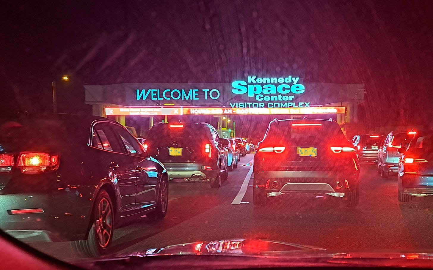Rob, a friend and NASA retiree, offered a spare room for me in Titusville near the Space Center. I flew to Orlando, snagged a rental car, and settled in for an enjoyable evening meeting some other NASA folks. They advised me to go early, traffic will be crazy. By 4:00 am the next morning, I was in the line of cars outside the Kennedy Space Center waiting for the gates to open. When they did, I was in and parked in a flash. I hustled over to the shuttle busses for the short ride to the Apollo/Saturn V Center.