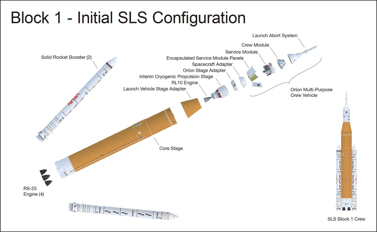 Barely two minutes into the flight, the SLS was already traveling over 3,000 mph when the solid rocket boosters, recycled from the Space Shuttle program, separated from the core stage. Each had burned more than 1.2 million pounds of propellant in those two minutes. For lay people like me, that’s about one tanker truck full of fuel going up in smoke every second, times two. Not smoke exactly since the fuel is based on oxygen and hydrogen, not carbon fuels like methane. (Yes, these buggers do contribute to climate change, but the impact of Artemis by itself, I’m told, is relatively minor. However, the increasing rate of chemical rocket launches by SpaceX and others has elevated the concern.)