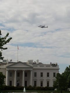 The news reports in D.C. said to look up between 10:00 and 10:30 am. I happened to be downtown and walked outside at 10:00, looked up and there it was! Everyone on the streets put their work day on hold to stare at the thing in the sky. I wandered toward the White House and caught a crude snapshot with my flip phone.
