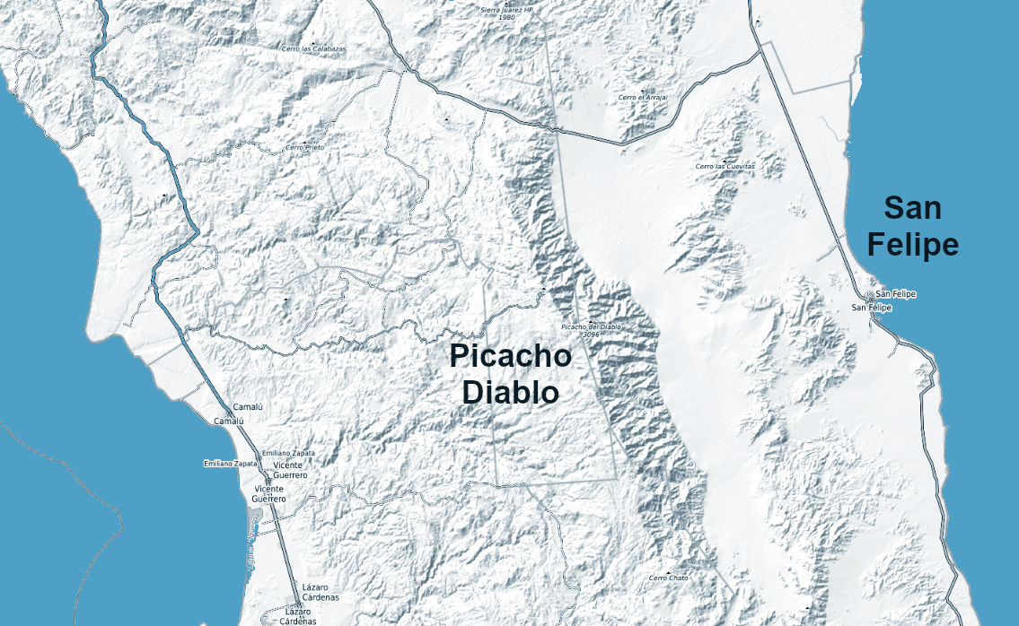 In late 1982, a hiking buddy and I, temporarily unemployed and eager to travel, seized on the big idea of a week-long trek across the 80-mile wide Baja peninsula in Mexico. Dennis and I would hike from the Sea of Cortez on the east shore, then march west to the Pacific Ocean. The walk would include a 30-mile crossing of the Sonoran Desert and a multi-day traverse of the mountains of the Sierra San Pedro Mártir. Our plan called for summiting, en route, the highest hunk of rock in the Baja, 10,157-foot Picacho del Diablo, the Devil’s Mountain. And we would do it in December.