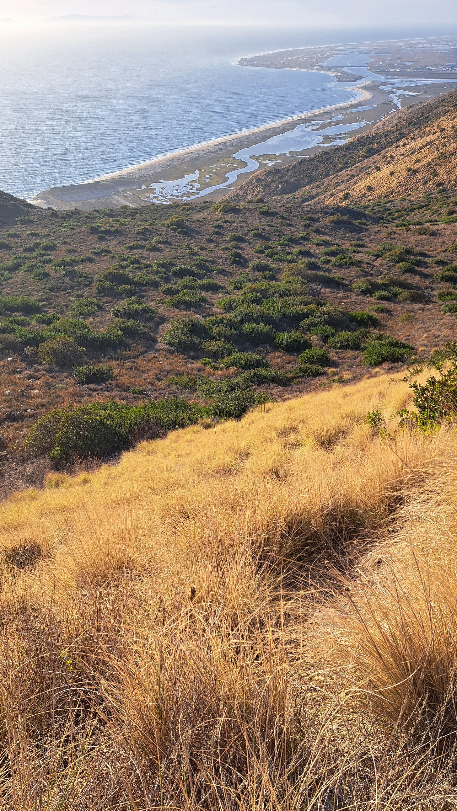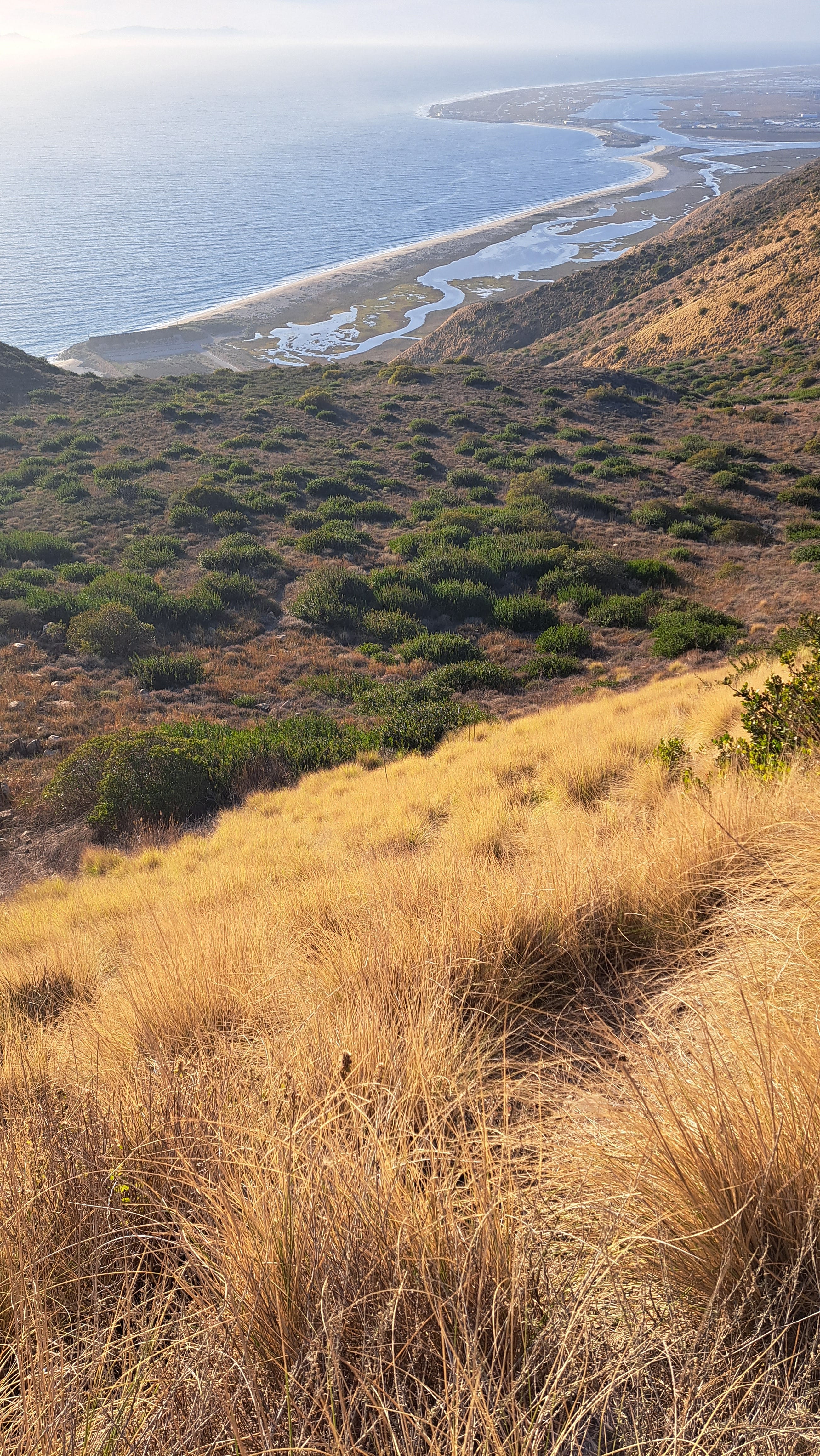 Kris's uncle Mike lives at the foot of the Santa Monica Mountains and was kind enough to not only put us up, but cook up some dinner when we arrived, feed us breakfast this morning, and join us for a few days of hiking and camping. For Day One, he suggested we give Mugu Peak a try, a short drive up the coast from Malibu.