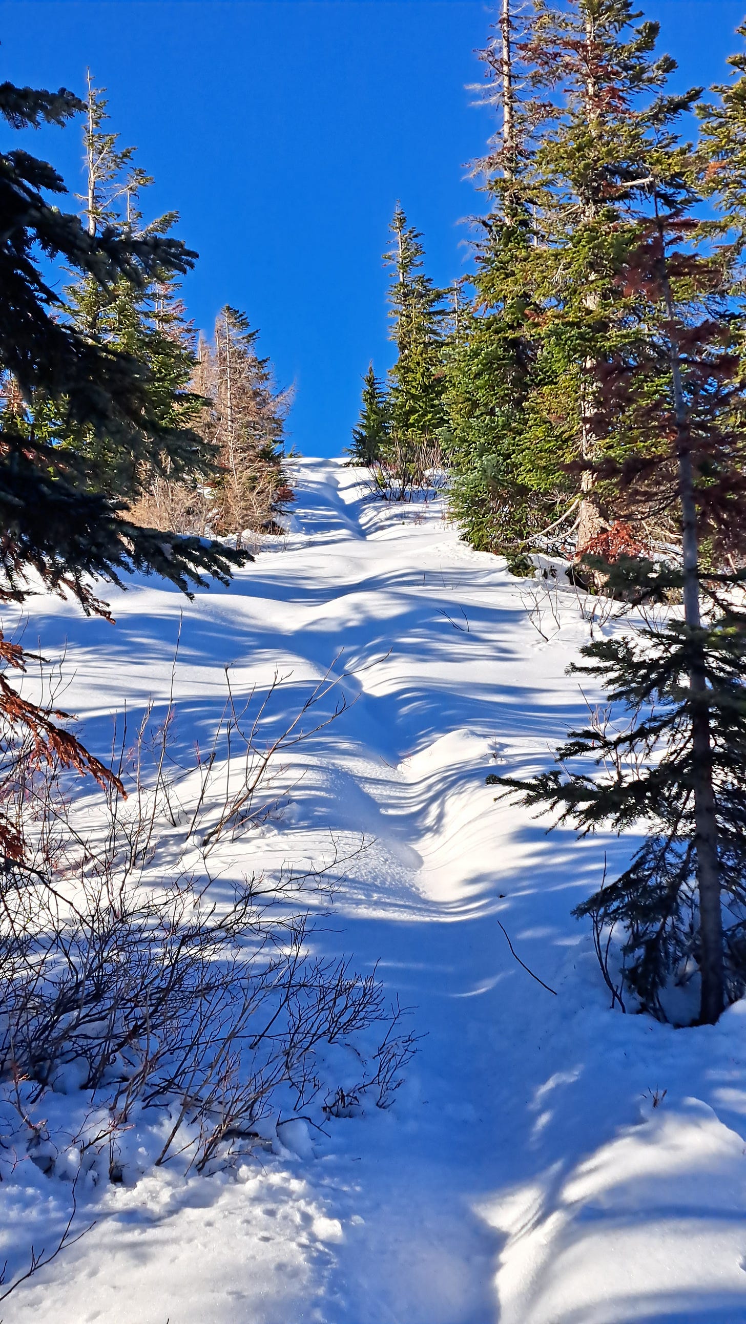 Looks like a real sleeper! Nice find for a new local summit! Beautiful snow and views you two had.👍